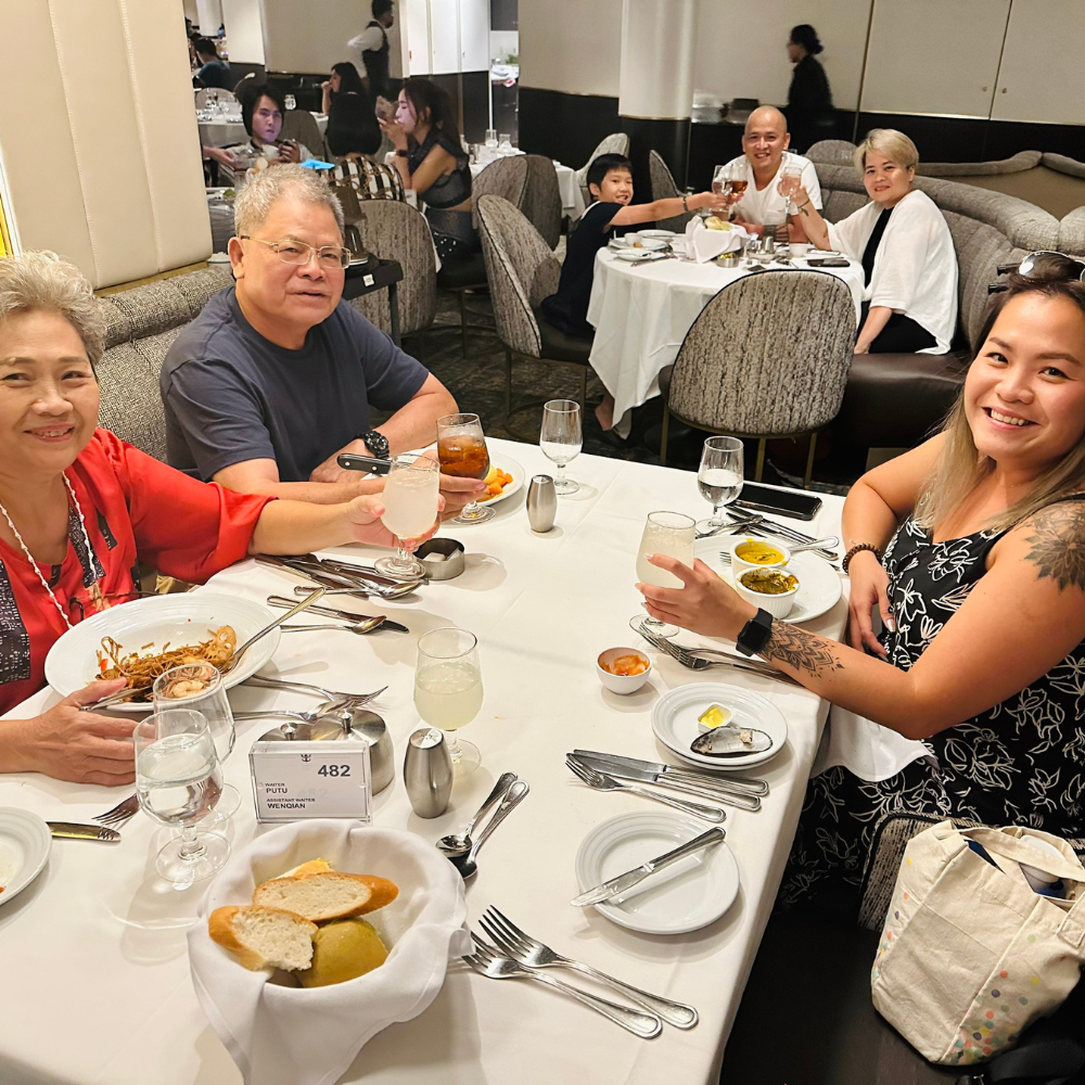 Nâng ly chúc mừng cùng thuyền trưởng và cùng nhau chụp tấm ảnh lưu giữ kỷ niệm đẹp này.