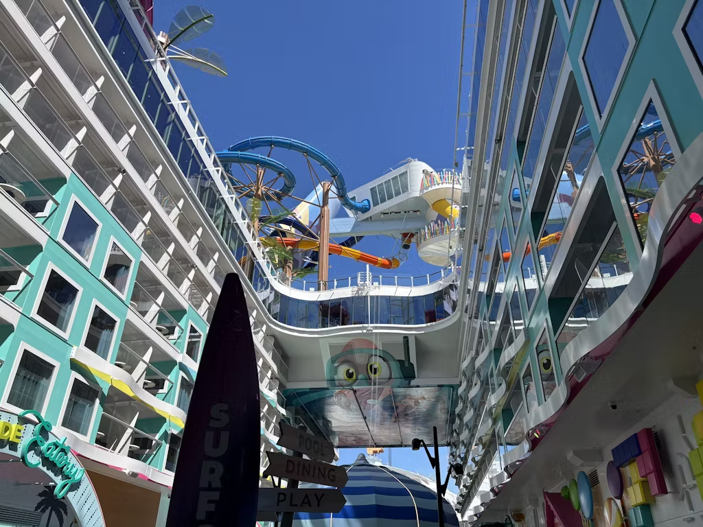 Nhìn lên từ Surfside đến Thrill Island trên Star of the Seas. Khu gia đình Surfside trên Star of the Seas (Ảnh: Adam Coulter)