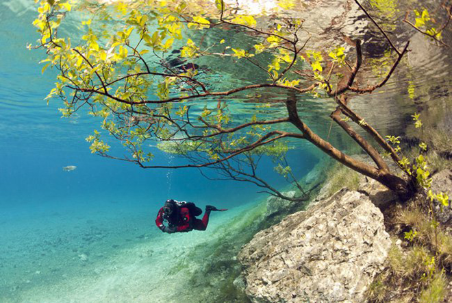 Vào mùa thu và mùa đông, Hồ Xanh của Áo là một vùng nước nhỏ nhưng phong cảnh được bao quanh bởi những con đường mòn leo núi nổi tiếng. Khi tuyết rơi trên những ngọn núi giáp ranh bắt đầu tan chảy vào mùa xuân sẽ làm cho mực nước hồ tăng lên. Đến tháng 6, công viên gần đó hoàn toàn chìm trong biển nước, giúp bạn có những trải nghiệm lặn lạ lùng nhất trên thế giới.