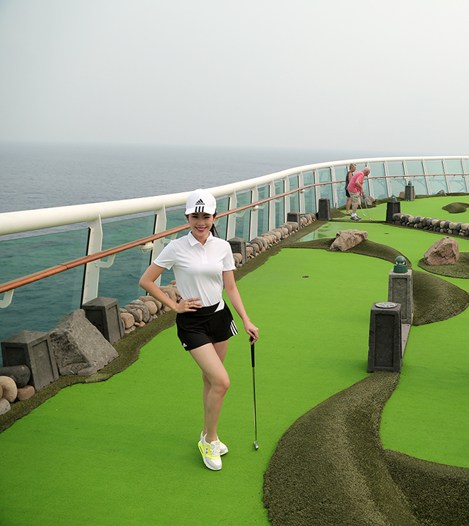 Bên cạnh việc tùm cho mình một góc xinh xắn để ngắm cảnh, bạn có thể tham gia nhiều trò chơi và hoạt động thể thao hơn như yoga, trượt băng... Trong số ấy, minigolf là trò chơi được ưa chuộng nhất trong giới doanh nhân mà bạn có thể cùng chơi với đối tác, bạn bè hoặc gia đình. Bạn có thể có các cuộc thi đấu nhỏ và những trải nghiệm vô cùng thú vị trong chuyến du lịch.