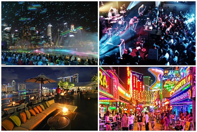 Du khách có muốn ở lại tại các thành phố ở Singapore đến tối muộn? Những "cú đêm" sẽ tìm thấy nhiều sự lựa chọn để ăn uống hoặc tiệc tùng trong các câu lạc bộ. Khiêu vũ suốt đêm tại Clarke Quay, Marina Bay và nhiều địa điểm khác nữa nếu du khách đang trong tâm trạng tiệc tùng. Những người đang tìm cái gì đó thoải mái hơn có thể đến các quán bar thoải mái sau bãi biển và thưởng thức cocktail với tầm nhìn toàn cảnh. Đối với các cuộc tụ họp ấm cúng, nhà hàng bar tại Club Street và Dempsey Hill cũng là những nơi nên đến.