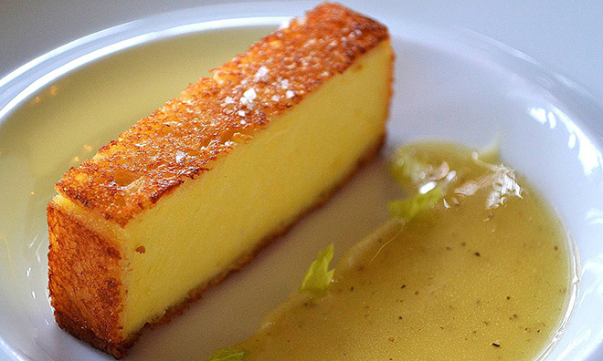 Đầu bếp siêu sao Yannick Alléno là người giám sát nhà hàng và chịu trách nhiệm lên thực đơn, một trong những món ăn nổi bật của nơi đây chính là bánh mì brioche kỳ lạ nhưng độc đáo. Nó trông có vẻ như một miếng bánh mì với lớp vỏ màu vàng nâu, nhưng thực chất được làm từ ...cá chó. Cá được chế biến hoàn hảo có kết cấu gần giống như mousse dùng kèm nước sốt làm từ củ cần tây là một sự kết hợp tuyệt vời.