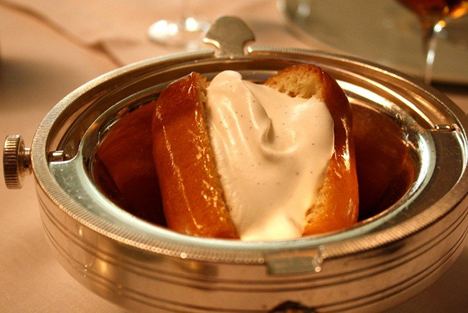 3. Bánh Rum Baba với rượu Armagnac, nhà hàng Le Jules Verne