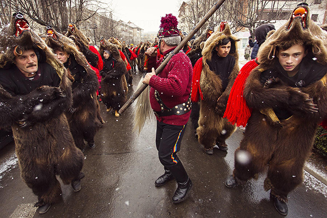 Ban đầu đây chỉ là một nghi lễ ngoại giáo để xua đuổi những thế lực "hắc ám" nhưng dần dần nó đã trở thành một truyền thống độc đáo ở Romania vào đêm Giao thừa. Trong suốt “điệu nhảy của gấu”, các vũ công hóa trang thành những chú gấu đến từ các khu rừng ở Romania và thành những người du mục đang xích các con gấu, điều này tượng trưng cho năm cũ qua đi và năm mới lại đến.