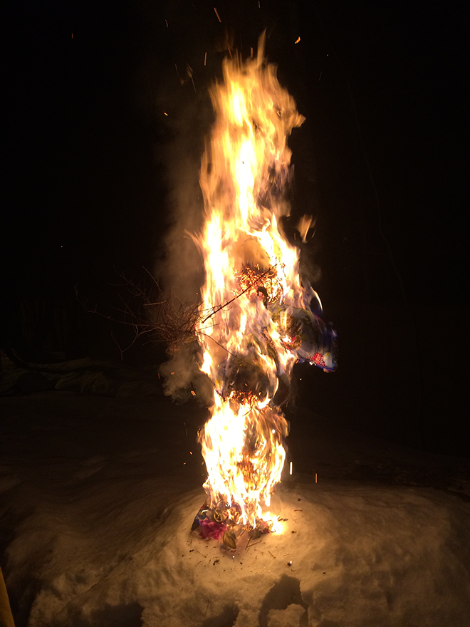 Người dân nơi đây thường làm những con rối hoặc bù nhìn trông giống những người mà họ không thích hoặc những người đã qua đời trong năm cũ. Sau đó, để tống khứ những điều cũ không may và chào đón những điều tốt đẹp mới họ sẽ châm lửa đốt những hình nộm này.