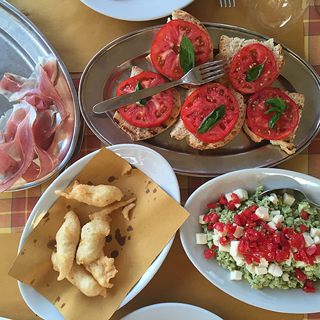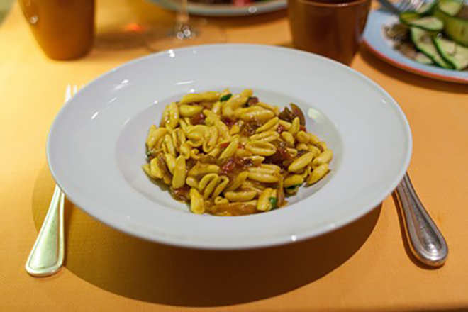 Cô viết xuống một nhà hàng tên là L'Officina del cacio, giải thích họ làm một món mì ống tự chế biến trong nước sốt nghệ. Bây giờ chúng tôi đã quá muộn để ăn tối, và tôi tuyệt vọng vì sẽ không có thời gian để trở lại sau. Nhưng khi khỏi thành phố, nhà hàng hiện ra ngay trước mặt chúng tôi.