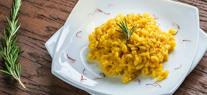 Tại cửa hàng thứ năm, tôi trao cho bạn một vài sợi nghệ tây trị giá 5.50 euro, mà tôi được đảm bảo là "đủ cho bốn người." Có các công thức nấu ăn trên bao bì gạo risotto và bánh budino, nhưng điều tôi thực sự muốn là nếm món nghệ tây nổi tiếng này trong một món ăn được chế biến bởi một đầu bếp Ý. Mặc dù mọi người cho rằng tất cả các nhà hàng cung cấp các đặc sản, tôi dường như không thể tìm thấy một nơi duy nhất đề cập đến nó trên thực đơn.