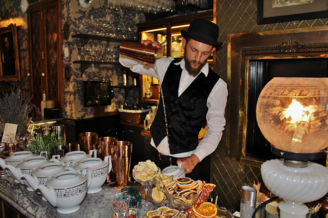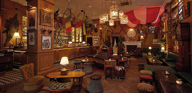 Quầy bar nằm kín đáo trên một con phố nhỏ ở Mayfair, lý tưởng cho một buổi chiều thứ bảy vui tươi. Sau khi uống một, hai tách trà cocktail - hoặc cocktail Champagne nếu bạn thích - bạn sẽ sớm bước vào tinh thần của dịp này.