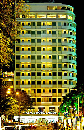 Khách sạn Palace Saigon tọa lạc tại đại lộ Nguyễn Huệ, một khu vực trung tâm hành chính-thương mại-du lịch-giải trí quan trọng nhất của thành phố Hồ Chí Minh. Với vị thế thuận lợi này, khách lưu trú sẽ có những cơ hội tuyệt vời nhất để trải nghiệm những nét đặc trưng và thú vị trong nhịp sống sinh họat của người dân Sài Gòn. Những địa danh hấp dẫn khách du lịch ưa thích tham quan đều nằm trong phạm vi lân cận khách sạn bao gồm Nhà hát Thành Phố, Ủy ban nhân dân Thành Phố, Nhà thờ Đức Bà, Dinh thống nhất, chợ Bến Thành và chỉ cách sân bay quốc tế Tân Sơn Nhất khỏang 8 km đường bộ. Khách sạn Palace Saigon ra đời vào ngày 21.12.1971. Vào thời điểm đó, Khách sạn Palace Saigon là một trong những khách sạn quy mô nhất tại châu Á. Quyết định đầu tư nâng cấp vào năm 2006 đã mở ra cho Palace Sài Gòn hướng đi mới, tạo thuận lợi cho Khách sạn trong việc tiếp cận và đáp ứng nhu cầu đa dạng của thị trường khách mục tiêu. Sau quá trình nâng cấp, sửa chữa cơ sở hạ tầng cũng như tái đào tạo nguồn nhân lực, Palace Sài Gòn khoác lên diện mạo mới: sang trọng, hiện đại, định chuẩn được phong cách phục vụ, tạo ấn tượng tốt đối với khách hàng. Tổng cục Du lịch quyết định công nhận Khách sạn đạt tiêu chuẩn quốc tế 4 sao vào năm 2007. Đặc biệt, Khách sạn Palace Saigon vừa được Tổng cục Du lịch và Hiệp hội Du lịch trao tặng danh hiệu Top 10 khách sạn 4 sao hàng đầu Việt Nam từ năm 2008 đến nay, giải thưởng cao quý nhất đối với giới kinh doanh khách sạn quốc tế tại Việt Nam. Phòng nghỉKhách sạn Palace Saigon có 144 phòng, nội thất đẹp với đầy đủ trang thiết bị cao cấp đạt tiêu chuần quốc tế 4 sao. Khách sạn có 4 loại phòng chính với các mức độ tiện nghi sang trọng khác nhau, rất nhiều phòng có hướng nhìn đẹp, bao quát toàn cảnh khu vực trung tâm thành phố. Nếu đi du lịch, hội họp hay thương vụ, dù là thời gian ngắn hay dài, khách sạn Palace Sài Gòn đều có thể cung cấp đầy đủ tiện nghi và dịch vụ cần thiết, đáp ứng nhu cầu đa dạng của quý khách . Bên cạnh đó, khách sạn còn cung cấp các dịch vụ tiện ích khác như: điện thoại quốc tế trực tiếp, miễn phí truy cập internet Wi-Fi tốc độ cao, ti-vi LCD truyền hình vệ tinh, mini bar, vật dụng để pha trà và café, két sắt riêng tại phòng.