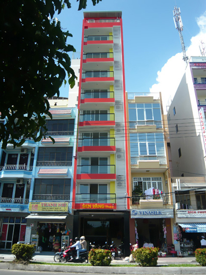 Tọa lạc dọc trên đường Trần Phú, bên một trong 29 vịnh biển đẹp nhất thế giới, khách sạn Sen Vàng Nha Trang (Golden Lotus Nha Trang) sở hữu một không gian lý tưởng với biển xanh, cát trắng, nắng gió ôn hòa quanh năm. Khách sạn được đánh giá 2 sao, theo nhu Tổng Cục Du lịch Việt Nam.Khách sạn Sen Vàng Nha Trang (Golden Lotus Nha Trang) có hệ thống 50 phòng được đầu tư thiết kế độc đáo với nội thất sang trọng, hiện đại, màu sắc trang nhã phù hợp với mọi đối tượng khách. Đặc biệt khách sạn có 8 phòng VIP, tất cả đều có ban công trong suốt hướng biển, bao quát toàn cảnh vịnh Nha Trang xinh đẹp. Xuyên qua lớp ban công kính trong suôt này, quý khách có thể chiêm ngưỡng toàn cảnh khu vui chơi giải trí Vinpearl land. Tất cả các phòng đều được trang bị các tiện nghi hiện đại, như hệ thống điều hòa nhiệt độ, bồn tắm, nước nóng lạnh, điện thoại, tivi màn hình phẳng LCD, két sắt an toàn, truyền hình cáp phục vụ quý khách với nhiều kênh truyền hình giải trí. Bên cạnh đó Khách sạn còn cung cấp miễn phí dịch vụ Internet tốc độ cao và báo đọc hằng ngày nhằm giúp quý khách luôn nắm bắt được các sự kiện thời sự và thông tin đang diễn ra trên thế giới một cách nhanh và tiện lợi nhất. Du khách sẽ tìm được tất cả những gì mình cần từ dịch vụ nhà hàng, thông tin tham quan du lịch theo yêu cầu.Khách sạn Sen Vàng Nha Trang (Golden Lotus Nha Trang) giới thiệu cho bạn cảm giác thoải mái tiện nghi như khi bạn đang ở nhà. Đến với khách sạn Sen Vàng Nha Trang (Golden Lotus Nha Trang), quý khách chắc chắn sẽ cảm thấy hoàn toàn hài lòng với cung cách phục vụ nhiệt tình, chu đáo của đội ngũ nhân viên đã được đào tạo. Với phương châm “your comfort, our pleasure”, khách sạn Sen Vàng Nha Trang (Golden Lotus Nha Trang) luôn đặt sự thoải mái của quý khách lên hàng đầu. Chúng tôi hy vọng sẽ góp phần mang đến cho quý khách một chuyến du ngoạn tuyệt vời và thú vị nhất đến thành phố Nha Trang văn minh và thân thiện.Vị trí khách sạnSen Vàng Nha TrangKhách sạn Sen Vàng Nha Trang nằm trên đường Trần Phú, đối diện công viên nước Phù Đổng. Golden Lotus là nơi nghỉ ngơi thật sự thoải mái của Qúy khách khi tới Nha Trang. Hãy sử dụng bản đồ bên dưới để tìm được vị trí của khách sạn Sen Vàng Nha Trang.