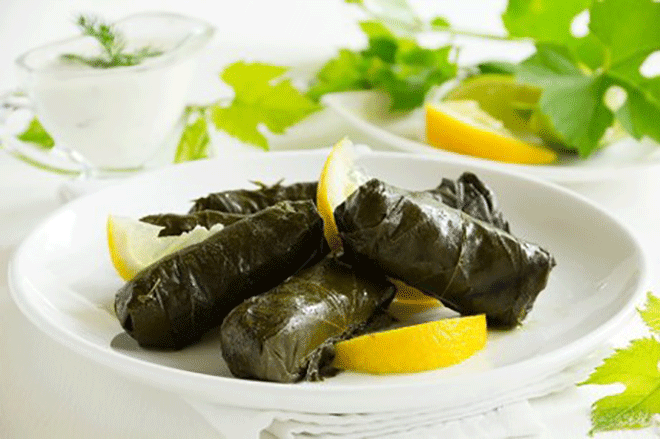 Dolma là một món gồm cơm và thịt nhồi kèm ớt, cà chua, cải zucchini, trứng sau đó hầm lên. Sarma có các nguyên liệu tương tự nhưng được cuộn với lá nho hoặc lá bắp cải. Cả hai món đi cùng nhau trong các bữa ăn.