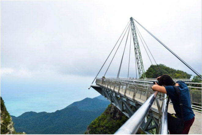 Tiếp theo là cây cầu Langkawi Sky Bridge nằm giữa lưng chừng trời ở Oriental Village. Đây là cây cầu dây văng đi bộ, nằm ở độ cao 700m trên mực nước biển, cao hơn ngọn núi Mat Cincang. Cách duy nhất để lên cầu là đi cáp treo Langkawi.