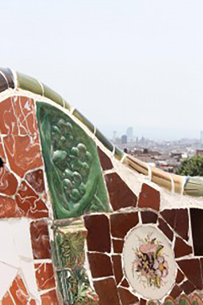 Cung cấp một lối thoát thanh thản từ luôn luôn nhộn nhịp Las Ramblas, Park Güell cũng cung cấp cho du khách một cái nhìn sâu sắc về phong cách chữ ký của Gaudi, ví dụ trong số đó có thể được nhìn thấy thời điểm bạn bước vào không gian xanh thú vị này, như các di tích nổi tiếng nhất trong Công viên Güell , Fountain Dragon, chào đón bạn khi nhập cảnh. Đài phun nước tuyệt đẹp này là một màn hình hiển thị rực rỡ của chữ ký khảm phong cách của Gaudi. Phương pháp đặc biệt này được gọi là 'trencadís', mà có thể được mô tả như là gia nhập bit vỡ gạch, món ăn và kính lại với nhau để tạo ra nghệ thuật đáng kinh ngạc, và Park Güell là một sự kính trọng đúng với những thiết kế đặc biệt.