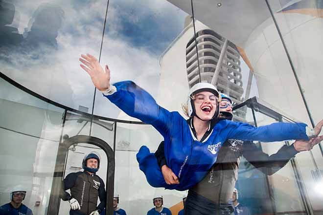 - Kích thích lượng adreanalin của bạn với iFly by RipCord, trò chơi mô phỏng skydiving. Bạn cần đặt chỗ để chơi iFly, vì nó rất được yêu thích nhưng không thu phí. Đây là trò chơi phải thử 1 lần trong đời theo như chia sẻ của nhiều hành khách, mặc dù ban đầu bạn có thể hơi sợ, nhưng cảm giác sau đó rất phấn khích.