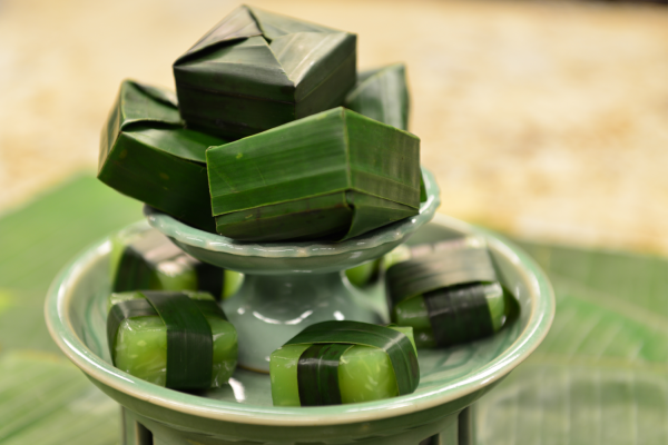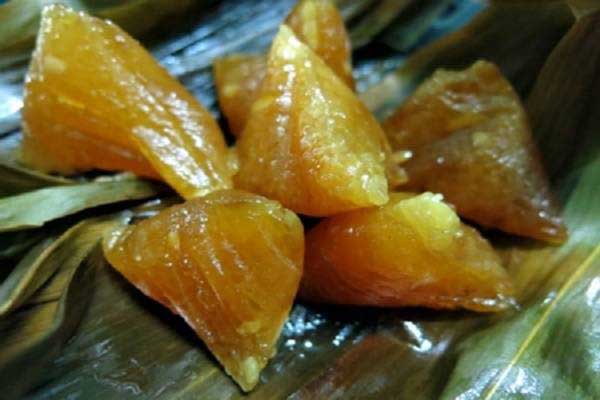Sau khi luộc chín bên ngoài bánh có màu vàng, được rắc thêm vừng đen. Khi ăn bánh có độ dẻo của nếp, giòn của đu đủ, độ ngậy của đậu xanh, vị béo của dừa, bùi của hạt sen và vị ngọt của đường… tất cả hòa quyện tạo nên một hương vị đặc trưng rất riêng.