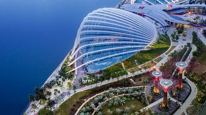 Những khu vườn bên vịnh của Singapore có những tòa nhà mái vòm có hình dạng như chiếc vỏ ốc. Bên trong là các loại cây ô liu cổ thụ của Thổ Nhĩ Kỳ, cây bao báp của châu Âu, cây cỏ của Australia.