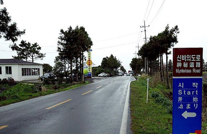 Chắc chắn khi tham gia tour du lịch Hàn Quốc, du khách sẽ được HDV đưa đến con đường ma quái này để tham quan. Cũng giống như các con đường khác, hai bên đường là cây cỏ hoa lá và mặt đường nhựa bình thường. Một số du khách đoán là do lòng đất dưới đường có từ trường mạnh, hút xe ô tô (có nhiều sắt) trôi ngược lên. Nhưng khi thả vỏ chai nước suối dưới đường thì cả chai nước cũng lăn ngược lên dốc.