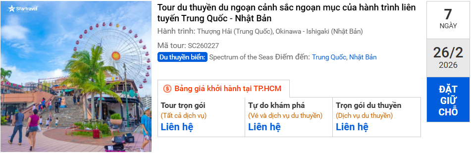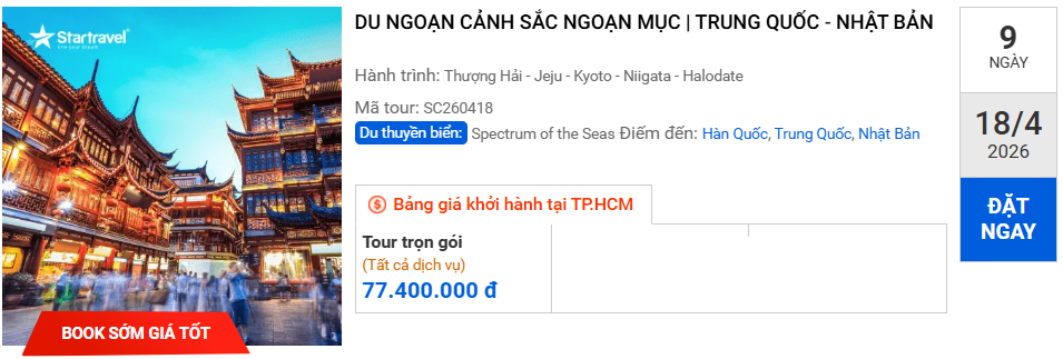 Cùng Star Travel bước vào cuộc hành trình duy mỹ trên những hải trình Đông Bắc Á đẳng cấp năm 2026. Từ những đền đài cổ kính tại Kyushu đến sắc xanh huyền thoại của biển đảo Okinawa, hãy để mỗi điểm dừng chân viết nên một chương mới cho kỳ nghỉ thượng lưu của bạn.