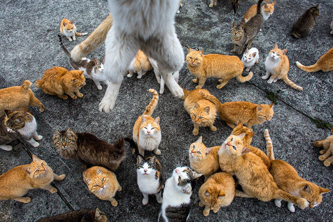 Những con mèo lúc đầu được ngư dân trên đảo mua về để bắt lũ chuột phá phách thuyền đánh cá. Dần dần, chúng sinh sôi nảy nở thành đàn.