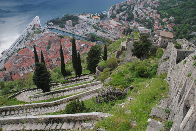 Để có thể chiêm ngưỡng toàn bộ khung cảnh Kotor, mọi du khách đều sẵn sàng trèo 1426 bậc trên tường thành quanh co dẫn tới pháo đài St.John ở độ cao khoảng 250 mét mà người dân địa phương thường gọi là Sveti Ivan.