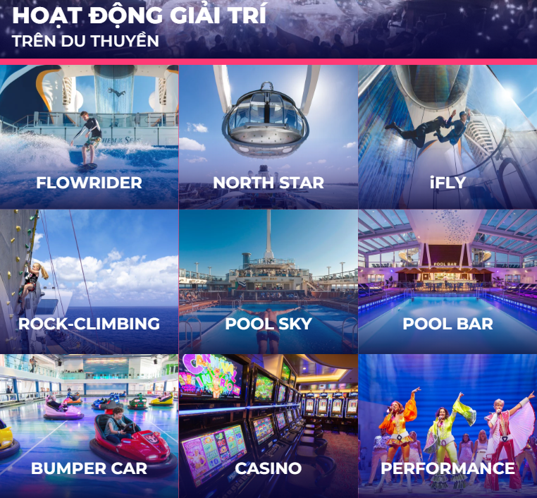 - Ứng dụng Royal Caribbean: Hãy tải App trước khi lên tàu để theo dõi lịch trình và đặt dịch vụ nhanh nhất.