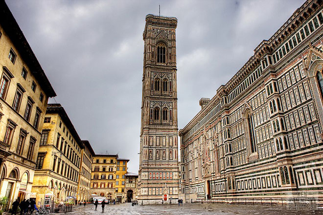 Nằm trong khuôn viên quảng trường chính của thành phố Florence, tháp chuông 5 tầng Giotto đơn độc nhưng kiên cường không khác gì một chiến binh La Mã cổ xưa.
