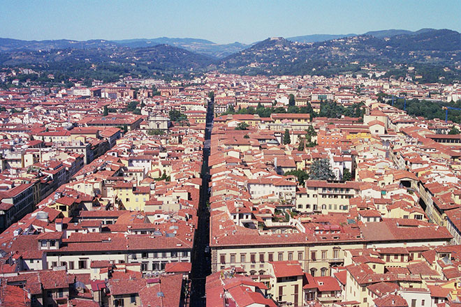Khi leo hết 414 bậc lên đỉnh của tháp chuông Giotto, du khách có thể ngắm nhìn toàn cảnh thành phố Florence với những ngọn đồi bao phủ xung quanh.