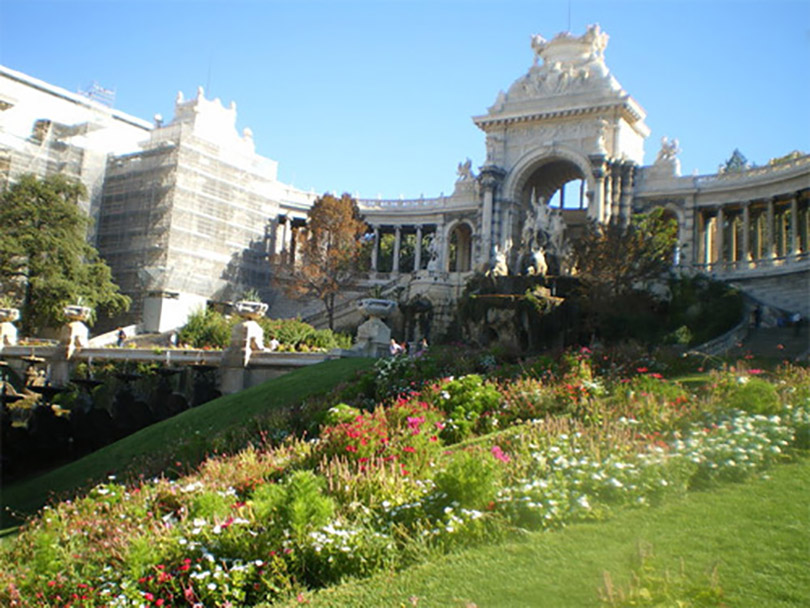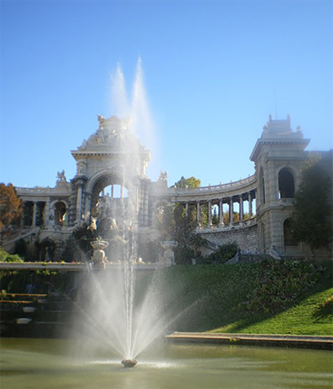 Tôi đến Marseille được ba ngày thì hai người bạn thân cũng vừa trở về sau chuyến du lịch dài. Gặp lại nhau, mừng hơn bắt được vàng, tíu tít kể chuyện suốt đêm, đến sáng hôm sau chúng tôi quyết định đi "hóng" nắng ở cung điện Longchamp. Buổi sáng đẹp trời, Longchamp bắt đầu từ sườn cỏ thoai thoải nở đầy hoa mùa thu. Những loài hoa màu trắng, hồng, tím mà tôi chẳng biết tên, nở dịu dàng trong gió nhẹ. Đài phun nước mát mẻ với những ghềnh thác tí xíu đổ xuống trong lành.