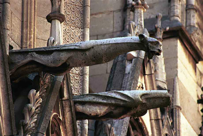 Bên cạnh việc xua đuổi ma quỷ và nhắc nhở kẻ tội lỗi là địa ngục đang chờ họ thì những tượng hình đầu thú thực chất có tác dụng là máng hứng nước mưa. Ngày nay, nước mưa từ trên mái vẫn được dẫn qua các máng và chảy xuống từ miệng những hình đầu thú này, độ xa đủ để giữ cho nền móng của công trình được khô ráo và chắc chắn. Chức năng đặc biệt này cũng là minh chứng cho từ "gargoyle" (máng nước hình đầu thú) có nguồn gốc từ động từ tiếng Pháp "gargouiller" nghĩa là nước chảy qua họng. Để tìm thấy những chiếc máng đặc biệt này du khách hãy đi bộ dọc theo phía bắc nhà thờ.