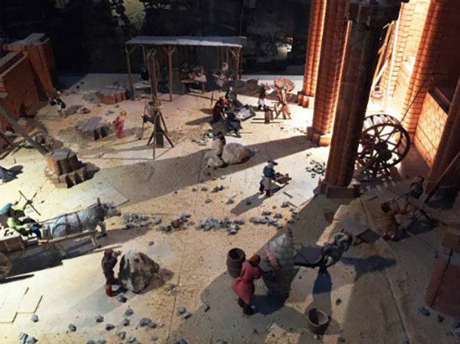 Một mô hình nhỏ bên trong nhà thờ đã làm sáng tỏ một phần về sự khéo léo của con người thời trung cổ. Mô hình tả được cảnh công trường xây dựng với những vật dụng và con người đang lao động tí hon. Du khách có thể tìm thấy mô hình ở sau bàn thờ chính giữa.