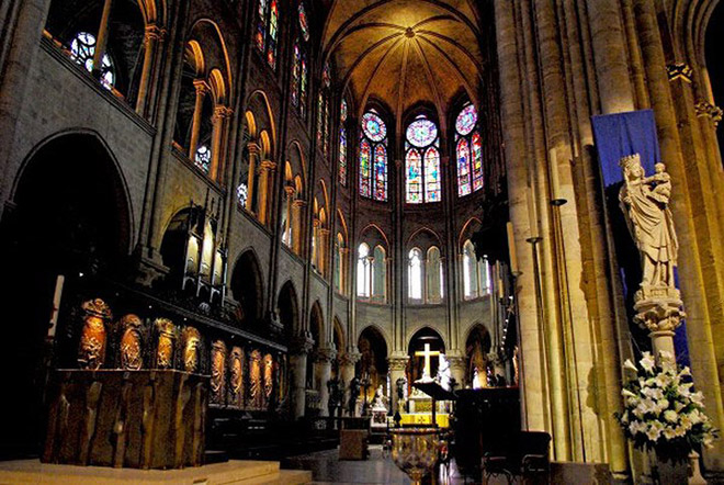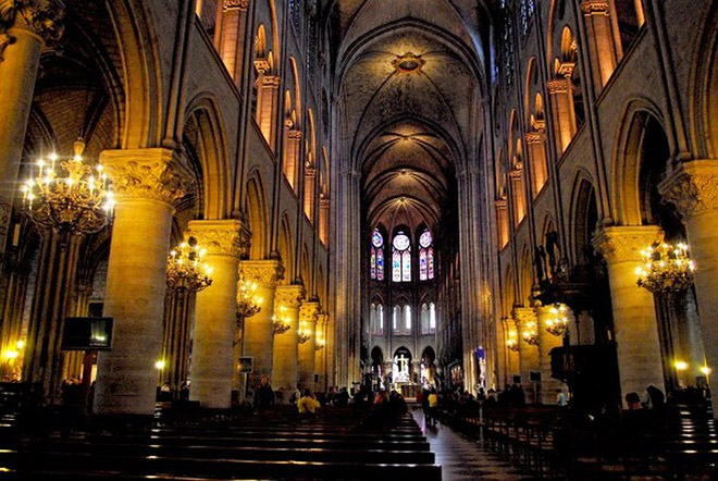 Một trong những công trình biểu tượng nổi tiếng nhất của Pháp cũng như châu Âu là nhà thờ Đức Bà Paris (Notre Dame Cathedral). "Báu vật" Công giáo này đã có hơn 850 năm tuổi. Nhà thờ nằm trên đảo nhỏ Ile de la Cite giữa sông Seine. Toàn bộ công trình tốn tới 200 năm để hoàn thiện, khởi công từ năm 1163 thời vua Louis VII cùng giám mục Maurice de Sully và hoàn tất năm 1345. Khi mới bắt đầu nhà thờ cũ ở Saint-Etienne bị phá bỏ để xây nên nhà thờ mới lớn hơn theo phong cách kiến trúc Gothic.