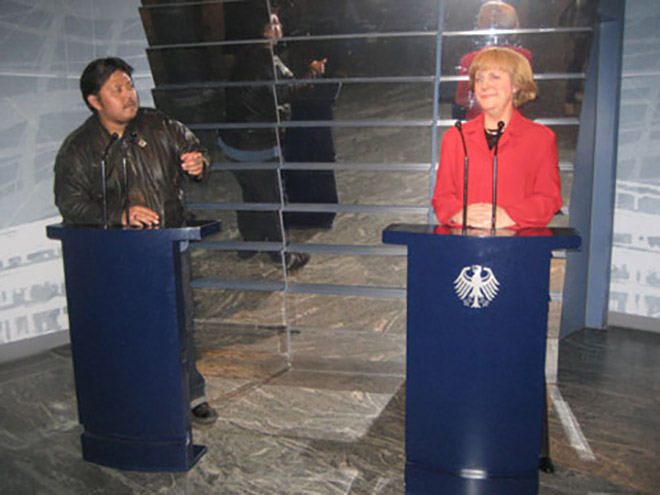 Một du khách “đăng đàn” cùng Thủ tướng Đức Angela Merkel