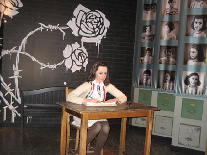 Bức tượng sáp Anne Frank đang ngồi viết nhật ký