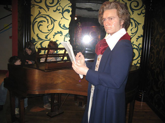 Bức tượng sáp thiên tài âm nhạc Beethoven được trưng bày tại khu vực réo rắt tiếng dương cầm những bản nhạc của ông