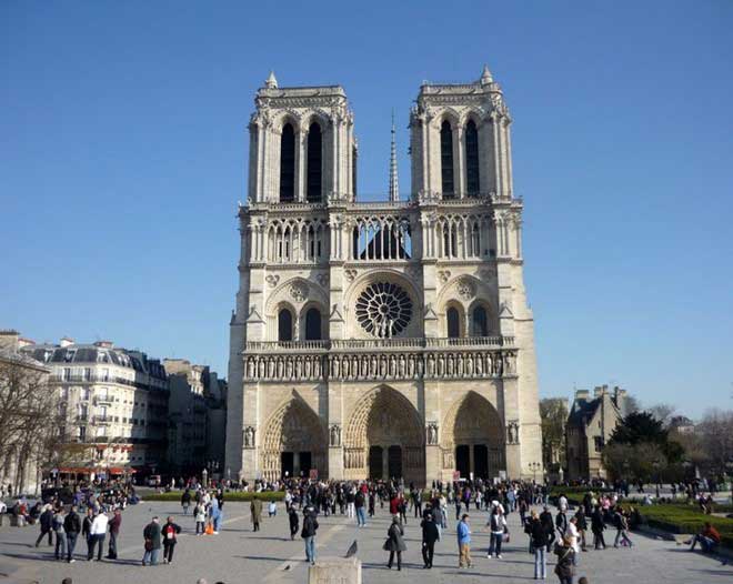 7. Nhà thờ Đức Bà, Paris, Pháp: (13,6 triệu du khách/năm): Là một trong những nhà thờ Gothic đầu tiên, kiến trúc của Notre Dame được nhiều người yêu thích. Công trình được xây dựng bắt đầu từ thế kỷ 12, và 300 năm sau mới hoàn thành. Nhà thờ bị hủy hoại qua nhiều năm, đặc biệt trong cách mạng Pháp. Mãi đến khi Victor Hugo cho ra đời tiểu thuyết Thằng gù ở nhà thờ Đức Bà, nơi đây mới được trùng tu. Ở Paris còn có 3 địa danh hút khách nữa là nhà thờ Sacre Coeur với 10,5 triệu du khách/năm, bảo tàng Louvre 9,2 triệu và tháp Eiffel đón 7 triệu du khách/năm.