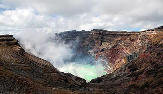 Đỉnh núi lửa Aso nằm ở trung tâm Công viên quốc gia Aso-Kuju. Miệng núi lửa Aso là một trong số những miệng núi lớn nhất thế giới với đường kính 25km. Các bạn có thể tưởng tượng rằng 25km sẽ rộng đến mức nào không. Với 25km của miệng núi lửa nó có thể chiếm trọn vài thị trấn và ngắm nhìn một miệng núi lửa như vậy chắc chắn bạn sẽ không bao giờ quên được cảm giác hùng vĩ của đỉnh Aso. Đây sẽ là trải nghiệm rất thú vị nếu các bạn tới Kumamoto đấy.