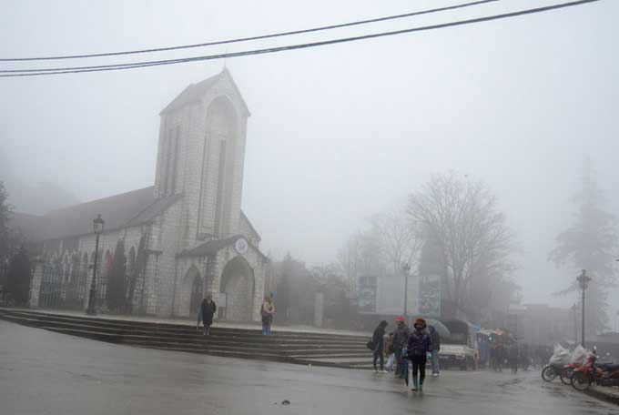 Sapa, mảnh đất miền Tây Bắc của Tổ quốc là một trong số các điểm du lịch mùa đông đặc sắc nhất được nhiều du khách và dân du lịch phượt lựa chọn. Nằm ở vị trí khá cao so với mực nước biển nên ở Sapa gần như se lạnh quanh năm tuy nhiên đến với nơi đây mùa đông bạn mới cảm nhận được cái giá lạnh thực sự cùng với đó là những trải nghiệm thú vị không thể nào quên. Mùa đông ở Sapa với sương mù bao phủ dày đặc như một tấm lụa cuốn lấy đất trời, lẩn khuất trong đó là các hàng thông gai, các đỉnh núi xa mờ và những ngôi nhà thấp thoáng trong màn sương. Vẻ đẹp ấy khiến bao du khách phải nao lòng, xao xuyến khi đến một thị tứ vùng cao thanh bình. Tuy nhiên, điểm thu hút nhất đối với du khách khi đến với Sapa mùa đông đó chính là vào các ngày nhiệt độ xuống thấp, du khách có thể nhìn ngắm tuyết rơi mà ngỡ như mình đang lạc vào trong một chốn thần tiên ở nơi xứ lạnh xa xôi nào đó.