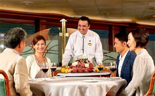 Đây là buổi sáng cuối cùng trên du thuyền. Cả đoàn chọn thưởng thức bữa sáng tại nhà hàng trên du thuyền. Ẩm thực tại đây vô cùng phong phú và đa dạng với không gian mở rộng nhìn thẳng ra đại dương xanh mát sẽ khiến quý khách không nỡ rời xa du thuyền Diamond Princess.