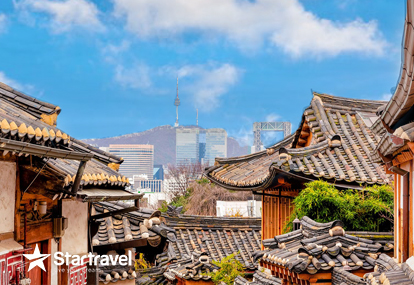 Làng cổ Bukchon Hanok: nằm giữa cung điện Gyeongbok, cung điện Changdeok và miếu thờ Thần Jongmyo với nhiều con hẻm, ngôi nhà được bảo tồn nguyên vẹn.
