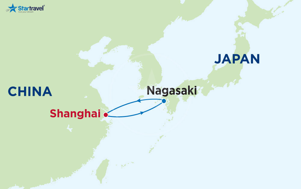 Bữa sáng trên du thuyền. 08:00 tàu cập cảng Nagasaki, một trong những thành phố đẹp nhất đất nước Phù Tang. Cùng với Hiroshima, đây là hai thành phố bị Mỹ ném bom nguyên tử trong Chiến tranh thế giới thứ 2. 08:00 xe đón và đưa đoàn tham quan tham quan: Viện bảo tàng tưởng niệm Hòa Bình, tưởng niệm hòa bình cho các nạn nhân của vụ đánh bom nguyên tử Nagasaki, được xây dựng để tưởng nhớ những người đã chết bởi vụ đánh bom nguyên tử xuống Nagasaki vào ngày 9/8/1945 và tưởng nhớ sự hy sinh của những người sống sót đã chết sau đó và cũng là nơi để cầu nguyện cho hòa bình. Công viên hòa bình Nagasaki, nằm tại thành phố Nagasaki, được xây dựng để cầu nguyện Hòa bình cho khu vực đã bị quân đội Mỹ thả bom B-29 trong Chiến tranh Thế giới thứ 2. Dùng bữa trưa tại nhà hàng. Tiếp tục tham quan: Khu phố Tàu Nagasaki, với các cửa hàng sầm uất trên con đường chữ thập khoảng 250m ở thị trấn Shinchi, Nagasaki. Là một trong 3 phố người Hoa lớn nhất ở Nhật Bản sau Yokohama và Kobe. Trên khu phố có các cửa hàng ăn uống hay thủ công mỹ nghệ Trung Hoa… đa dạng phong phú về hình thức nằm san sát, nối tiếp nhau. 19:00 xe đưa đoàn về lại cảng. 19:00 du thuyền sẽ rời thành phố Nagasaki để về lại với Thượng hải tráng lệ. Quý du khách hòa nhập vào thế giới giải trí trên du thuyền. Dùng cơm tối sang trọng trên du thuyền